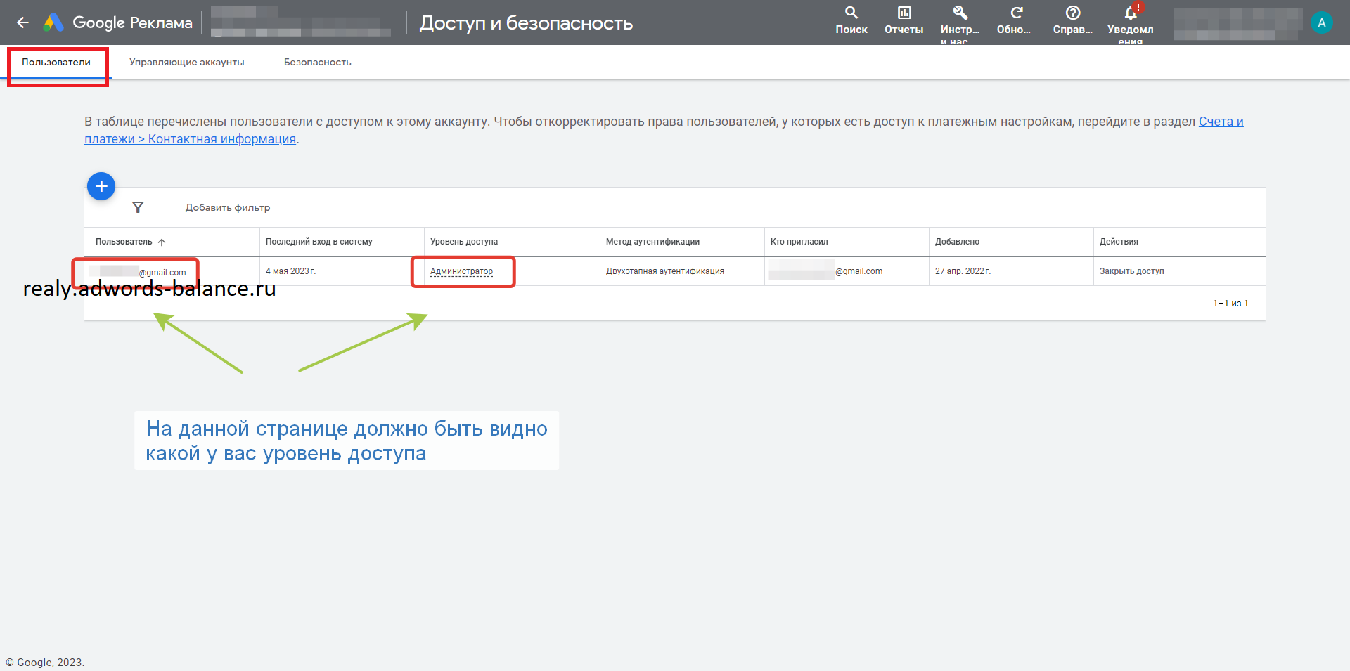 "Только чтение" недостаточно, потому что при таком доступе нельзя проверить есть ли права на оплату в аккануте Google Adwords или нет.
