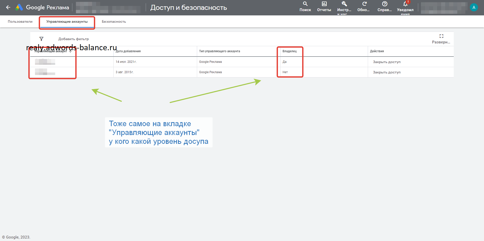Большинство характеристик аккаунта Google Ads можно посмотреть на этом уровне доступа и уже предварительно оценить аккаунт и перейти к следующему шагу!